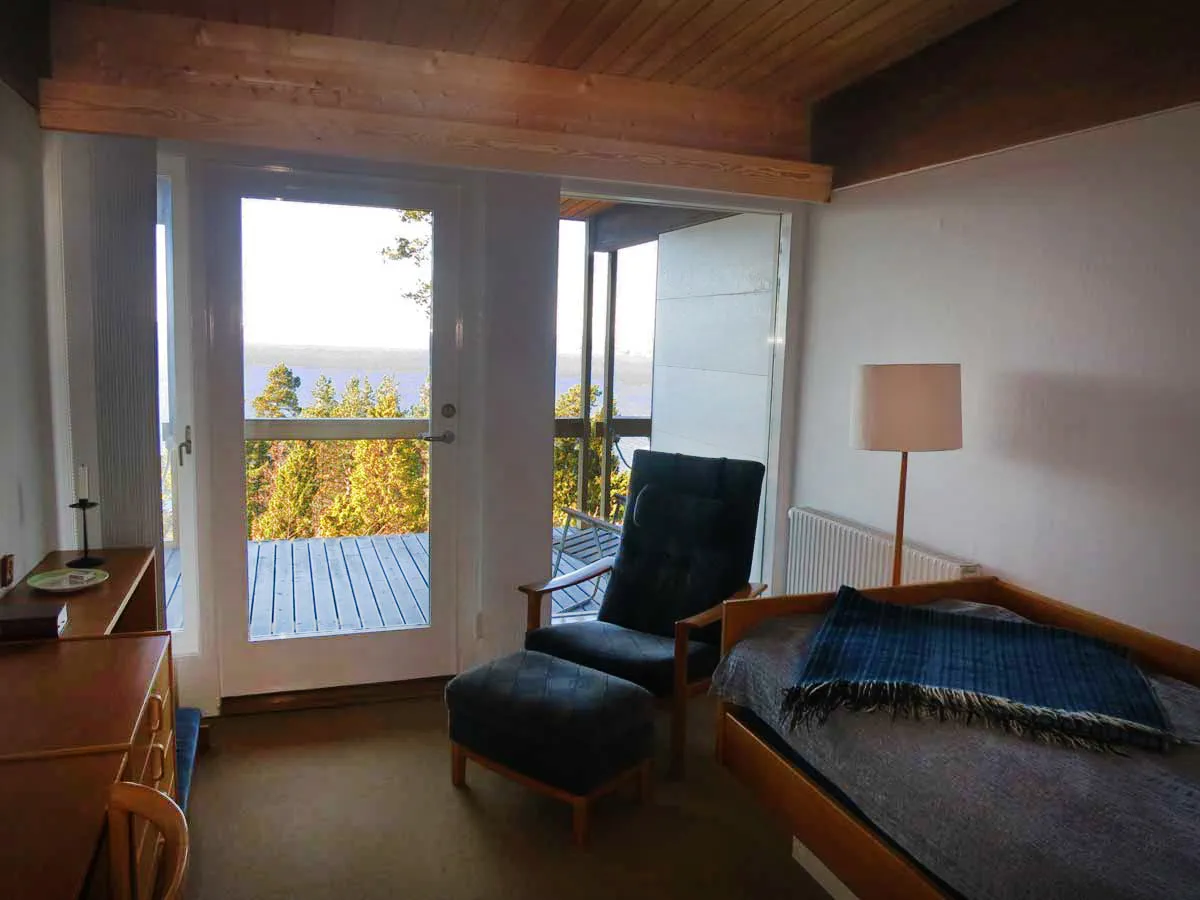 I gästlängan har alla sitt eget rum med egen altan och utsikt över Vättern. Varje rum har egen toalett, men duschar och bad finns i närliggande byggnad.